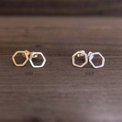 These beautiful Hexagon Earrings are made in 2 colors: Gold or Silver. Lightweight and durable.