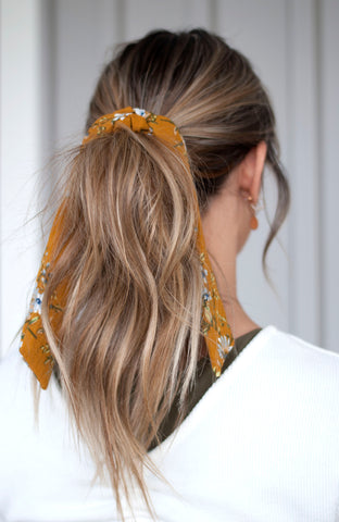 These trendy Floral Hair Scarf Scrunchies come in 5 colors. They are the perfect accessory!